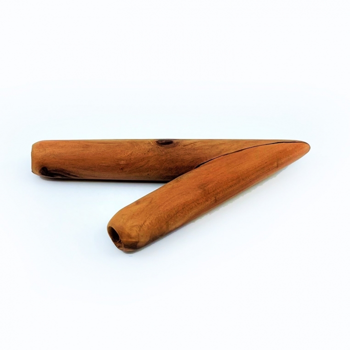 Beautiful and simple kuripe, carved by our friend in Bali. The wood from the beautiful "Cemara Wood" (Casuarinaceae) has smooth multicolored strokes that create an experience of movement and depth. The Cemara Wood has a wonderful coniferous scent. The kuripe fits perfectly in the hand and fits most noses and face types.