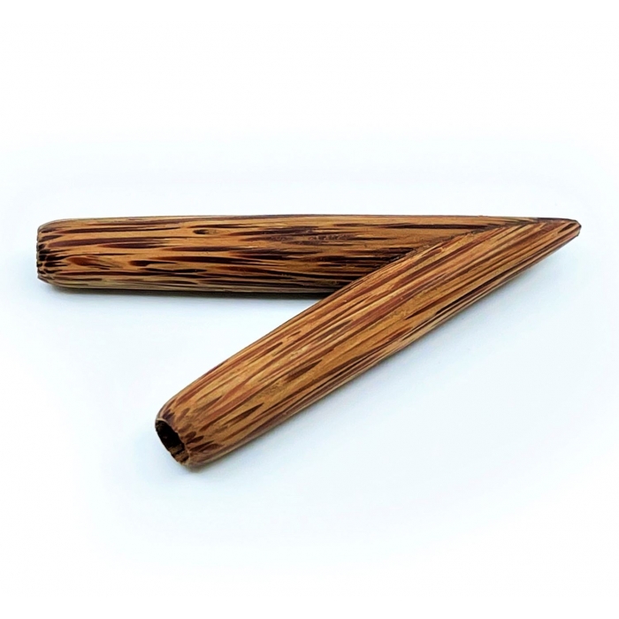 Beautiful and simple kuripe, carved by our friend in Bali. The wood from the beautiful coconut palm (Cocos nucifera) has a very lively structure with multicolored stripes that create an experience of movement and depth. The kuripe fits perfectly in the hand and fits most noses and face types.