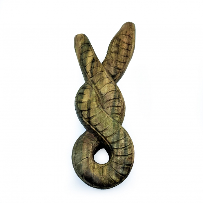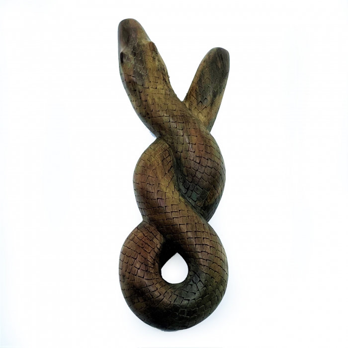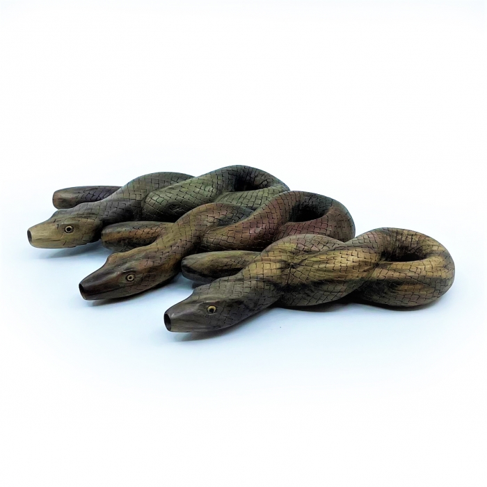 Beautiful and exclusive serpent kuripe, carved by our friend in Bali. These snuff pipes are carved from a single piece of Waru Wood (Hibiscus tiliaceus) which has a shiny surface with a texture that gives the impression of great depth. The coiled serpent fits perfectly in the hand and fits most noses and face types. The serpent is in most cultures a symbol of initiation and rites of passage. The Serpent's venom, its nature to shed skin, association with the trixter, and its connection to kundalini, are also interesting symbols for the shaman.