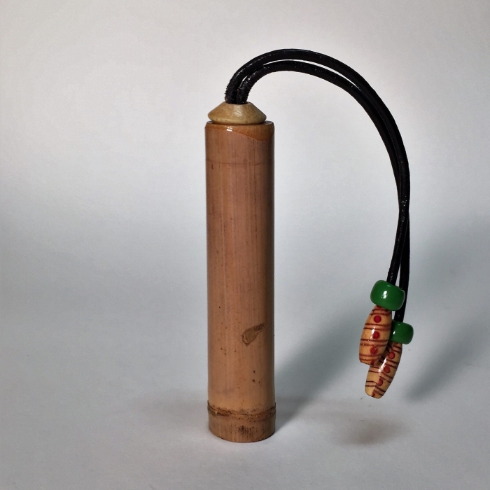 Asi 10 cm dlouhé bambusové schránky o obsahu 5-10 ml. Ideální na rapé, kadidlo nebo jiné šamanské medicíny. Schránky jsou ošetřeny přírodním šelakem, který chrání jejich obsah. Uzavírání zajišťuje korkový špunt opatřený ozdobnými koženými pásky. K dispozici v barvách nature, roasted a dark roasted, které odpovídají odstínům luxusních verzí kuripe a tepi.