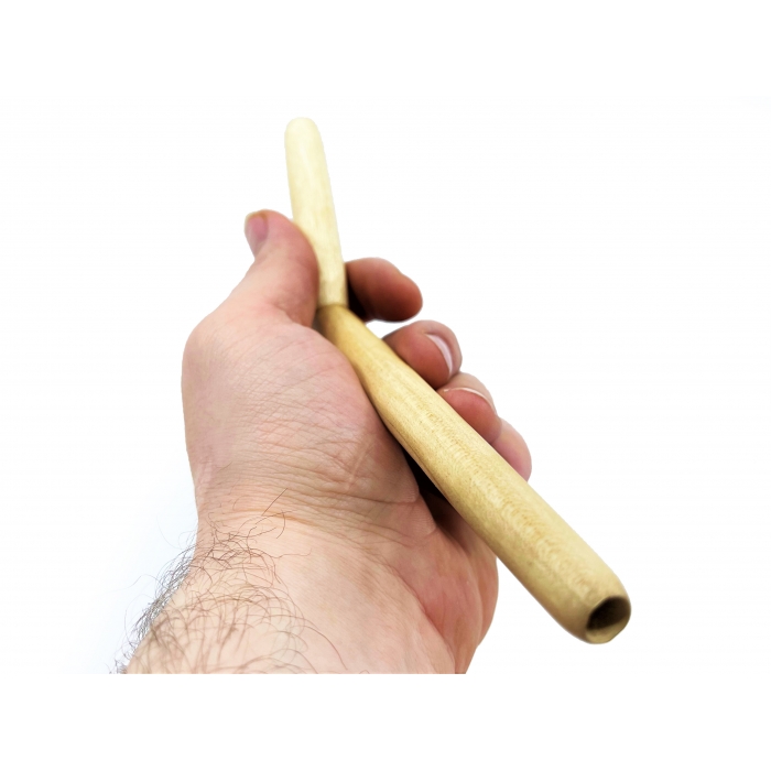 Beautiful and simple tepi, carved by our friend in Bali. The beautiful crocodile wood (Zanthoxylum rhetsa) has an enchanting shiny and light surface with a structure that gives the impression of great depth. The wood almost shines and radiates purity. The tepi fits perfectly in the hand and fits most noses and face types.