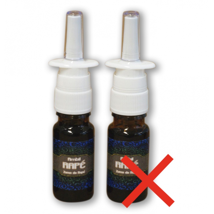 Suco de Rapé liquid extract comes in 11 ml amber glass bottles, with a nose-spray dispenser included. Apply one or two sprays in each nostril, while holding the sprayer almost horizontally. Slightly breathing in through the nose will enhance the entry into the sinuses. It is important to treat each nostril, as both sides have separate properties: the left side is used for expelling negative energy and the right side is used for receiving good energies, balance, and health. Advised is to allow the fluids to go outward by blowing the nose, and that the remains are not swallowed but spit out. It is advised to keep the body upright and not lying down on the back after administering.
