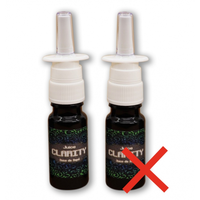 Suco de Rapé Clarity is a potent and refreshing nasal spray. It is made by steeping a blend of 10 different varieties of Rapé in a hydro-alcoholic solution for many months. Organic bio alcohol was used in the steeping and extraction phase to ensure stability of the infusion and to stop the natural fermentation process. Following the long steeping, the juice is separated by extensive filtering and then slow vacuum evaporation of the solution reduces the liquid into a juicy extract. The vacuum reduction involves no heat. The result is a high quality concentrated extract and so called "raw" product. Before bottling, a small percentage of bio alcohol was added to ensure a limitless shelf life.