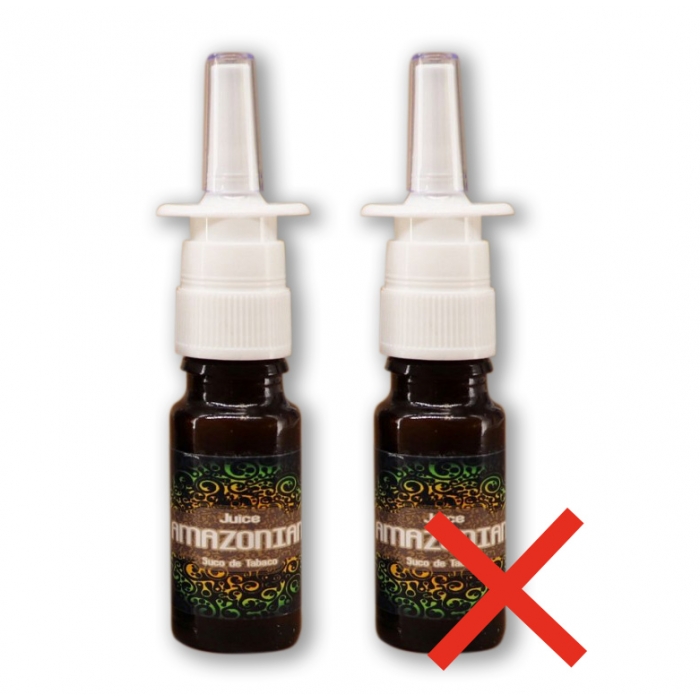 Suco de Rapé liquid extract comes in 11 ml amber glass bottles, with a nose-spray dispenser included. Apply one or two sprays in each nostril, while holding the sprayer almost horizontally. Slightly breathing in through the nose will enhance the entry into the sinuses. It is important to treat each nostril, as both sides have separate properties: the left side is used for expelling negative energy and the right side is used for receiving good energies, balance, and health. Advised is to allow the fluids to go outward by blowing the nose, and that the remains are not swallowed but spit out. It is advised to keep the body upright and not lying down on the back after administering.